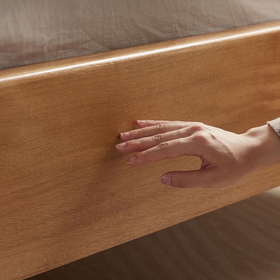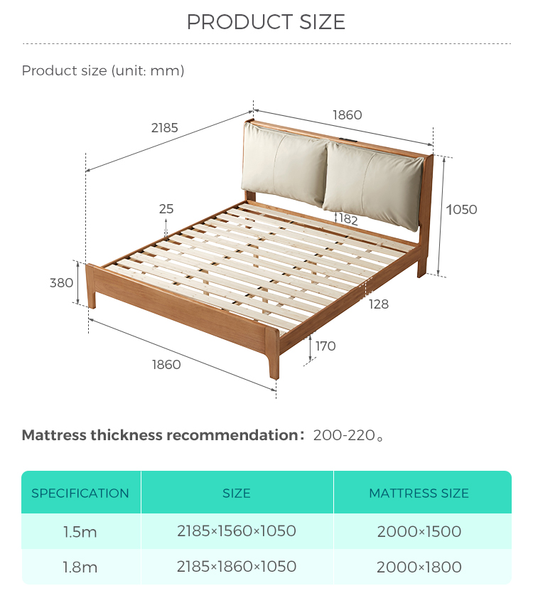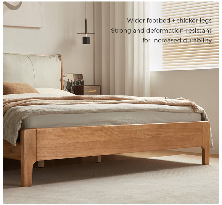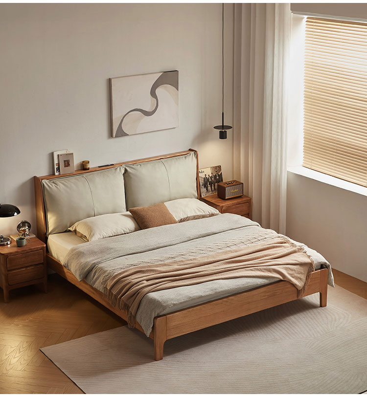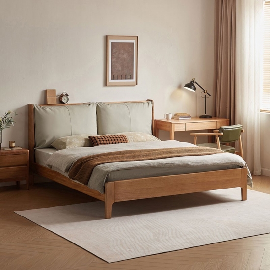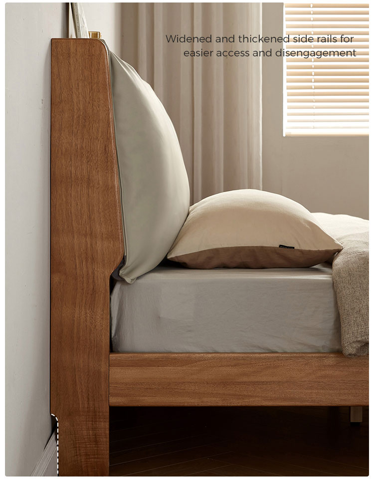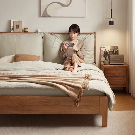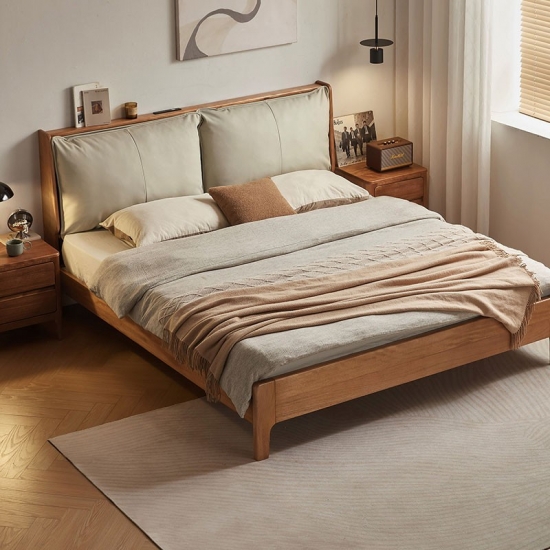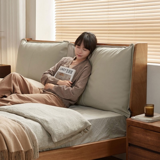 Tempat Tidur Berlapis Kulit Walnut Finish dengan Rangka Kayu Solid LH133A3-A |