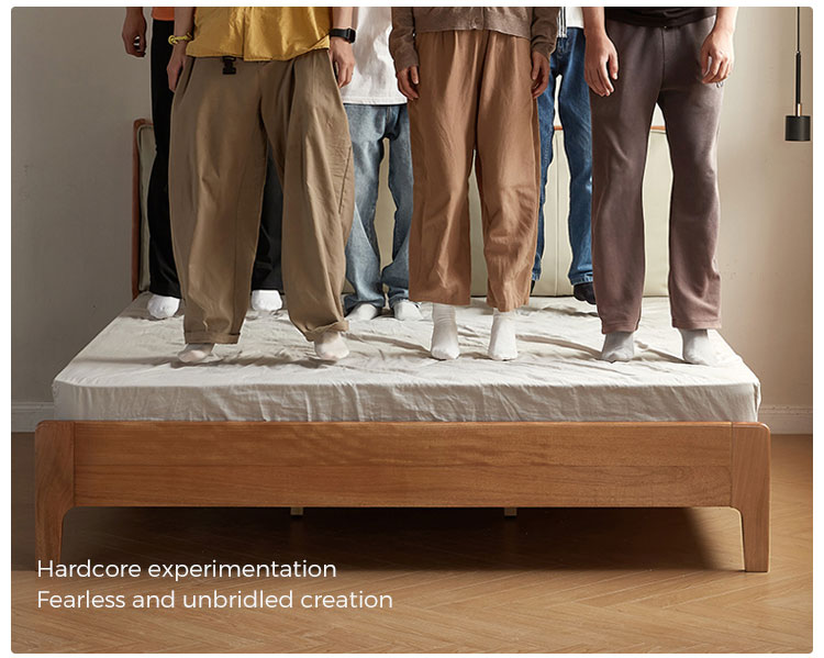 7Tempat Tidur Berlapis Kulit Walnut Finish dengan Rangka Kayu Solid LH133A3-A